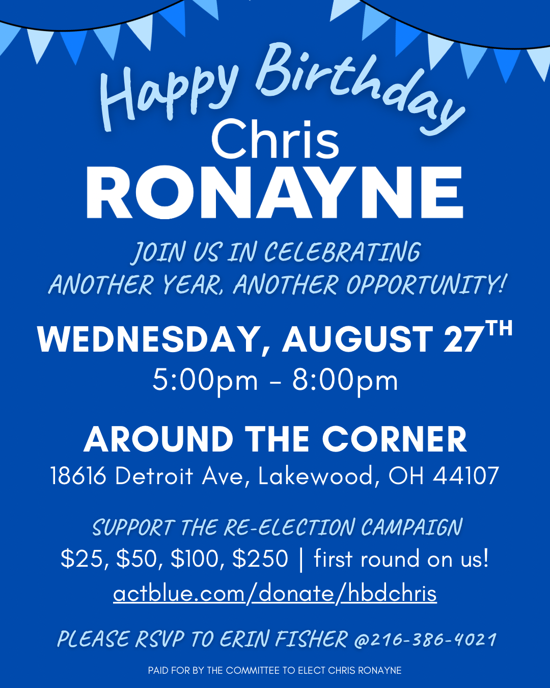 Our friend and Rocky River Councilwoman Jeanne Gallager is hosting a fundraiser for her re-election campaign on Wednesday, September 10th from 5-7pm at Market (1387 Linda Street). Please come out and support her campaign and use the QR code to donate and help us keep Rocky River BLUE!!