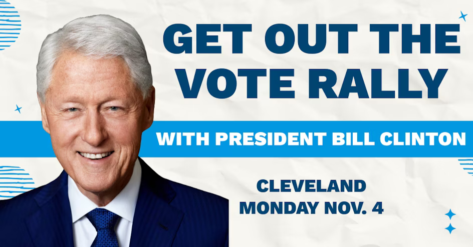 Monday November 4th at 9am!! Join President Bill Clinton, Senator Sherrod Brown, Congresswoman Joyce Beatty, Congresswoman Shontel Brown, Supreme Court Candidates Michael P. Donnelly, Melody Stewart, and Lisa Forbes, along with other Ohio Democrats for a rally in Cleveland to get out the vote ahead of Election Day!! RSVP for this great event HERE!!
