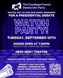 September Meeting!! Please RSVP below for our September meeting on the 24th at the Rocky River Library–social time at 6:30pm, meeting start at 7pm!! Speakers to be announced soon!! RSVP HERE Yard Signs!! We will be getting yard signs for Kamala Harris/Tim Walz and Sherrod Brown THIS WEEK and will be planning an event very […]