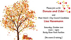 RSVP for our next pizza postcard meeting October 26, 6:30PM open, 7PM start Fill out postcards, eat some pizza and learn about our local candidates! (speakers start at 7) Speaking of local candidates! Ward 1 Candidate, Lisa Havemann covers the City’s consideration of rezoning in her most recent newsletter, Building Bridges. Sign up on her […]
