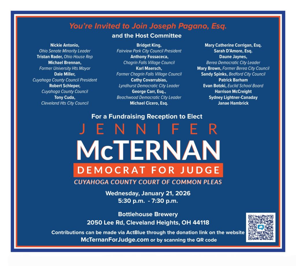 Ed Fitzgerald is running for Congress to unseat Max Miller and is one of the Democratic candidates currently in the running for the race. He will be holding a Town Hall at the Rocky River Library this Sunday, January 11th at 2pm. Please attend to meet Ed and hear more about his campaign!! Learn more about Ed HERE!!