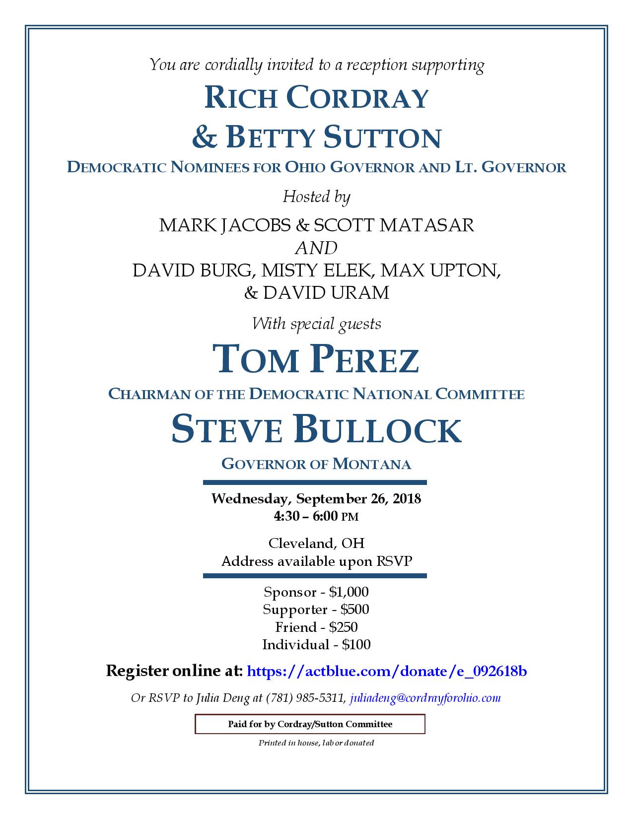 Richard will be joined by Tom Perez, Chair of the Democratic National Committee and Steve Bullock, Governor of Montana. By all important measures such as job growth and education, Ohio has declined under the state’s Republican leadership. Richard Cordray and Betty Sutton will bring the change that’s needed to improve the lives of all Ohioans.
