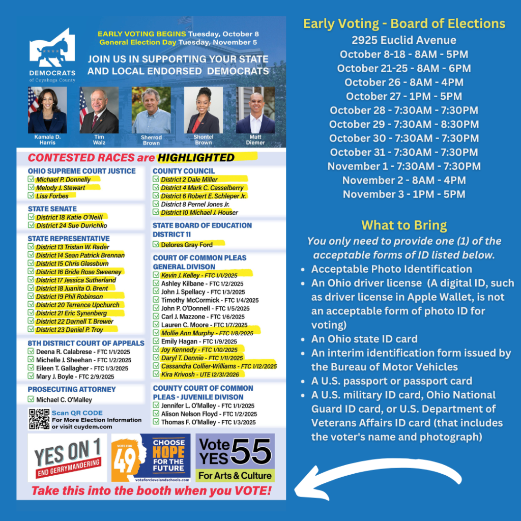 Early voting ends November 3rd at the Board of Elections (2925 Euclid Avenue, Cleveland, OH 44115)–skip the crowds and vote early!!