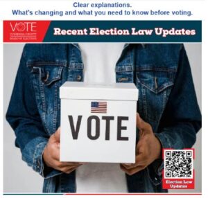 If you have friends, relatives or neighbors who always vote by mail (even ones you never talk politics with), they will appreciate this clear, easy-to-understand information from the Board of Elections about changes to the vote by mail process. Recent Election Law Updates