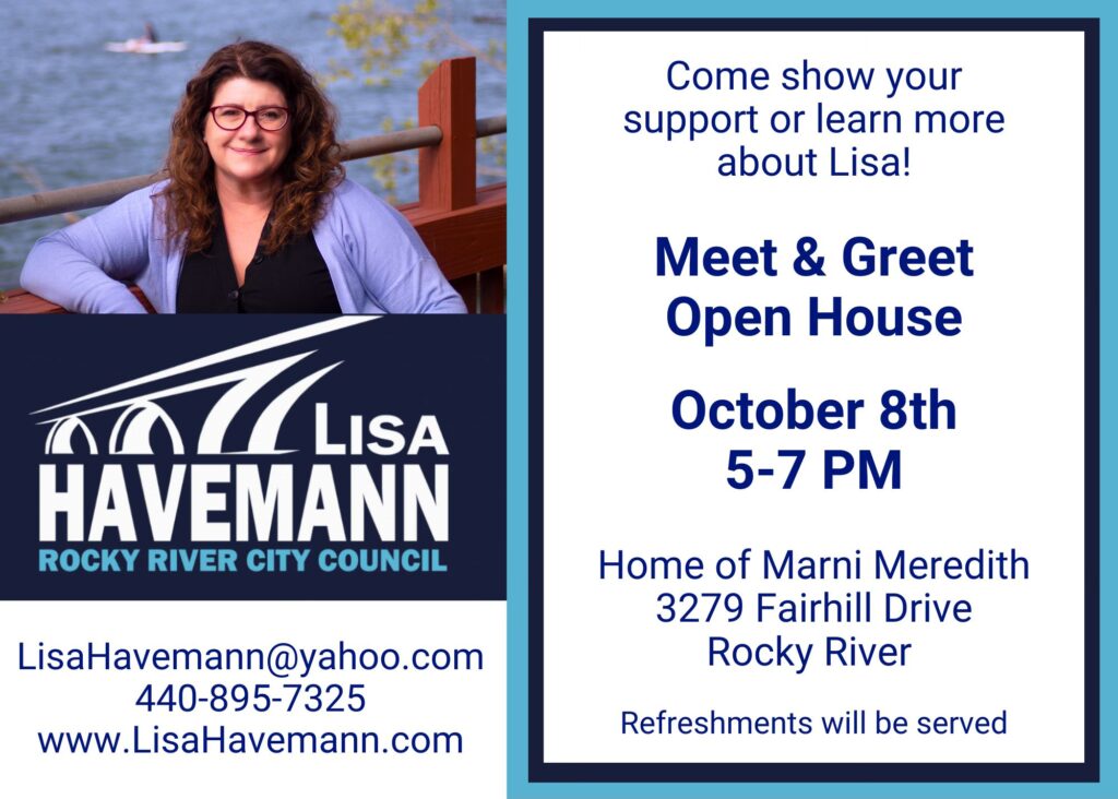 Lisa is very involved in the Rocky River community, a proud Democrat, and is extremely committed to keeping Rocky River strong and BLUE!! Please go to her website HERE where you can donate to her campaign HERE, order a yard sign, and subscribe to her community newsletter, Building Bridges!!