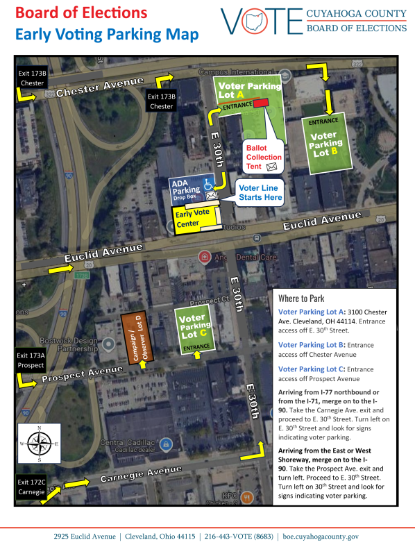 Find your polling location HERE or you can vote at the Board of Elections (2925 Euclid Avenue Cleveland, OH 44115)–map below! Find a sample ballot HERE!